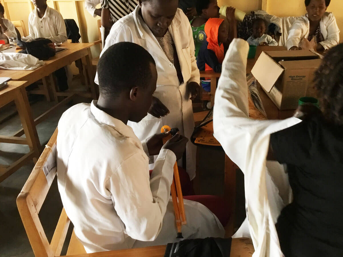 Mich hatte am Tag zuvor ein Kollege angesprochen, ob ich nicht vielleicht eine Unterstützung für den Matheunterricht geben könnte, da sie ja fast nichts an Zeichenmaterial für die Tafel haben. So habe ich mit Anne gesprochen und für die Spende von 100€ konnte sie 4 Sets in Nyamagabe kaufen. So konnte ich dann je 2 Sets in der Primary und der Secondary School überreichen. Die Kolleginnen und Kollegen und Noel haben sich sehr gefreut und herzlich bedankt.